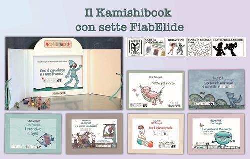 Sette storie con un kamishibai! Storie che parlano di diversità, di emozioni e condivisione. Ciascuna storia è tradotta con i simboli della CAA (Comunicazione Alternativa e Aumentativa). È un audiolibro e ci sono i burattini di tutte le storie. Sono 172 schede per Kamishibai, in formato A3. Il kamishibook, ispirato dal kamishibai, antico metodo di narrazione giapponese è di un materiale plastico robusto, maneggevole e riciclabile. I titoli sono: Lino il calzino spaiaito, Pino il cavaliere e i mostramici (Premio il paese delle Fiabe, Serra Riccò e rivista Andersen), il pesciolino a righe, Puzza, peli e ciccia, Lia Pasticcia e il mostro Mangianonne, Lupo Gino e la combriccola di Boscofitto (premio Andersen Sestri Levante, sezione infanzia), Le avventure di Tazza. Età di lettura: da 4 anni.