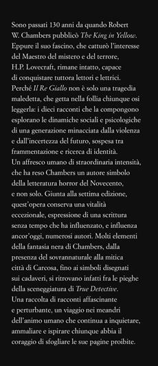 Chambers ha lasciato il segno nella letteratura horror del Novecento e in particolare nel maestro del mistero e del terrore H.P. Lovecraft, che ha affermato: "Quest'opera raggiunge vertici straordinari di paura cosmica". Giustamente famosi sono i racconti che hanno come filo conduttore "Il re giallo", una fantomatica tragedia che induce alla pazzia tutti coloro che la leggono.