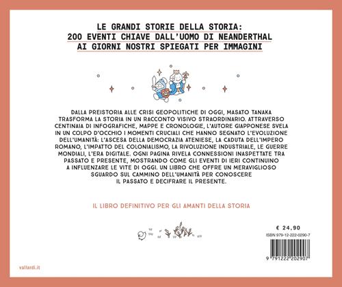 Dalla preistoria alle crisi geopolitiche di oggi, "La Storia in infografica" di Masato Tanaka trasforma millenni di storia in un racconto visivo straordinario. Attraverso oltre 200 infografiche, mappe e cronologie, l’autore giapponese rende accessibili a tutti i momenti cruciali dell’umanità: l’ascesa della democrazia ateniese, la caduta dell’Impero Romano, l’impatto del colonialismo, le rivoluzioni industriali, le guerre mondiali, l’era digitale. Ogni pagina rivela connessioni inaspettate tra passato e presente, mostrando come gli eventi di ieri continuino a plasmare le nostre vite.