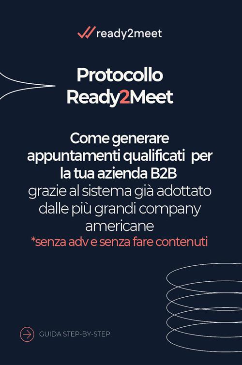 Nel B2B complesso, il problema non è "fare lead". Il vero problema è parlare con i decisori giusti, al momento giusto, con un'offerta rilevante. Il Protocollo Ready2Meet nasce da questa esigenza concreta. Non è un libro di marketing generico, né una raccolta di tattiche isolate. È la formalizzazione di un sistema outbound strutturato, testato sul campo su aziende reali, che permette di generare appuntamenti qualificati e conversazioni commerciali ad alto valore, in modo prevedibile e sostenibile. Il metodo prende ispirazione dai modelli di outbound strategico utilizzati da anni dalle grandi company B2B americane, adattandoli al contesto europeo e italiano, sia dal punto di vista operativo che normativo.