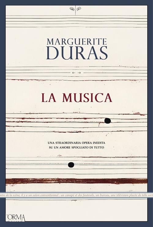 Nella hall di un albergo di provincia, un uomo e una donna si ritrovano subito dopo la sentenza che sancisce il loro divorzio. Parlano, tacciono, tornano a porsi le stesse domande di sempre, come se i tre anni trascorsi dalla separazione fossero passati invano, o non fossero passati affatto. È in una casa non lontana che si sono desiderati e odiati, che hanno voluto morire o uccidere l’altro, che hanno amato troppo e troppo male. Di tanto in tanto il telefono squilla, porta le voci dei nuovi amori, fa irrompere l’altra vita che si sono ormai costruiti. Eppure, in quella notte sospesa, nulla deve accadere e tutto è ancora in gioco. Pièce decisiva del teatro durassiano, "La Musica" (titolo che l’autrice pose direttamente in italiano) venne messa in scena per la prima volta nel 1965. È un dialogo spoglio e ossessivo, costruito su silenzi e ricordi, in cui l’amore sopravvive alla propria fine e continua a risuonare come una melodia melanconica. Vent’anni dopo, Duras scrisse "La Musica Seconda" (in originale La Musica Deuxième) per tornare a quella stessa notte, riproporla, spingerla più a fondo e trasportarla fino all’alba. "La Musica" e "La Musica Seconda" formano un dittico che costituisce un’opera unica, intrecciando un discorso lirico ed evocativo sul tempo che non passa, sull’impossibilità di «finire» una storia, sulla violenza silenziosa dell’amore quando non ha più un nome. In questa prima, attesa, edizione italiana, il testo è arricchito di un ampio apparato critico che ricostruisce la genesi dell’opera, le trasformazioni teatrali e cinematografiche, dando anche conto di varianti e riscritture. Prefazione di Arnaud Rykner.