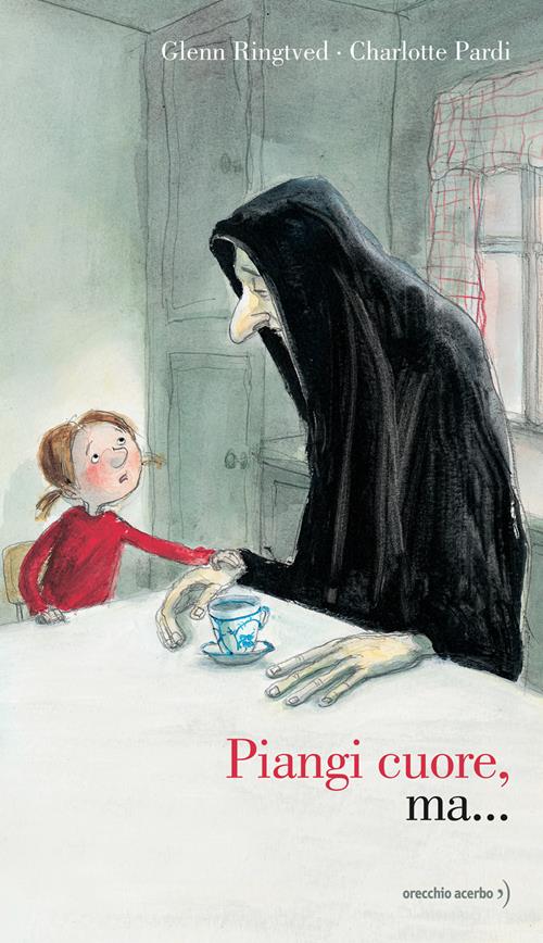 Quattro fratelli intorno a un tavolo, pieni di tristezza. La loro nonna sta male e il fatto che la Morte sia seduta lì con loro, non è un buon segno. L’unica soluzione per evitare il peggio è quella di distrarla, quella signora incappucciata, con un caffè dopo l’altro. La Morte però spiega loro, con una fiaba, che la vita senza la morte, così come il giorno senza la notte, non avrebbe alcun valore e senso. Il suo racconto li convince e lasciano che lei vada a prendersi la nonna, dicendo alla sua anima di volare via. Il vento leggero che entra dalla finestra ricorda loro, addolorati intorno al letto della nonna, che ogni volta che lo sentiranno soffiare, sarà come ricevere una sua carezza. La leggerezza necessaria per trovare consolazione. Età: da 4 anni.