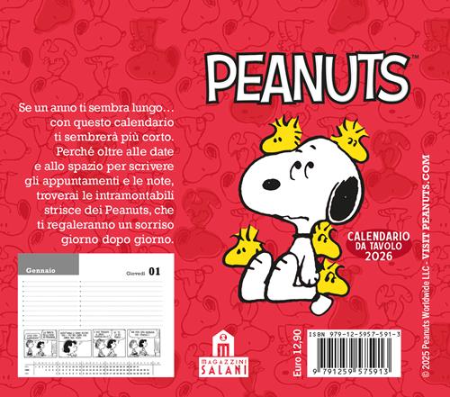 Il calendario da tavolo 2026 con le illustrazioni dei Peanuts.