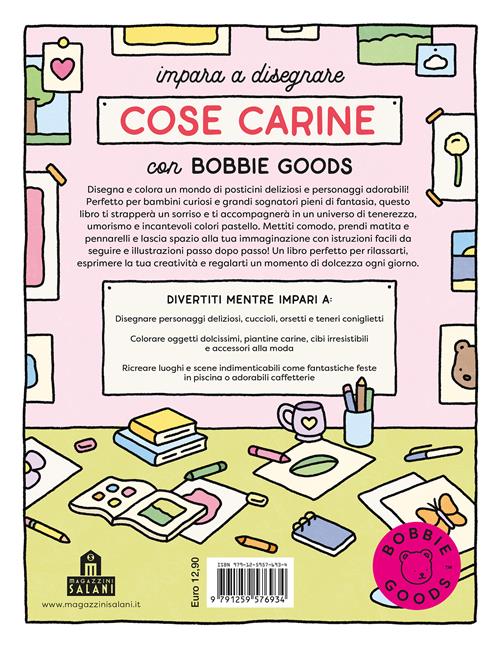 Perfetto per bambini curiosi e grandi sognatori pieni di fantasia, questo libro ti strapperà un sorriso e ti accompagnerà in un universo di tenerezza, umorismo e incantevoli colori pastello. Mettiti comodo, prendi matita e pennarelli e lascia spazio alla tua immaginazione con istruzioni facili da seguire e illustrazioni passo dopo passo! Un libro perfetto per rilassarti, esprimere la tua creatività e regalarti un momento di dolcezza ogni giorno. Divertiti mentre impari a: disegnare personaggi deliziosi, cuccioli, orsetti e teneri coniglietti; colorare oggetti dolcissimi, piantine carine, cibi irresistibili e accessori alla moda; ricreare luoghi e scene indimenticabili come fantastiche feste in piscina o adorabili caffetterie Età di lettura: da 5 anni.