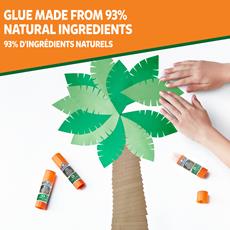 La colla stick Elmer's "Pure School" realizzati con ingredienti naturali al 93%, il corpo è realizzato al 100% in plastica riciclata e l'imballaggio in cartone è privo di plastica, ispirando tutti a credere nel verde