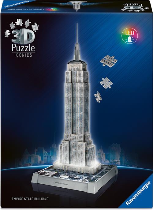 Scopri l'affascinante mondo di Ravensburger 3D Puzzle Iconics: la collezione definitiva di modelli di vere icone provenienti da tutto il mondo! L'Empire State Building, con i suoi 102 piani, è parte integrante dello skyline notturno di New York. Assemblare questo iconico grattacielo in formato puzzle 3D è un'attività emozionante e rilassante sia per i grandi costruttori che per coloro che vogliono diventarlo. Una volta completato, questo capolavoro in stile Art Deco può persino brillare di una calda luce bianca o colorata grazie alla luce LED inclusa (batterie necessarie non incluse).
