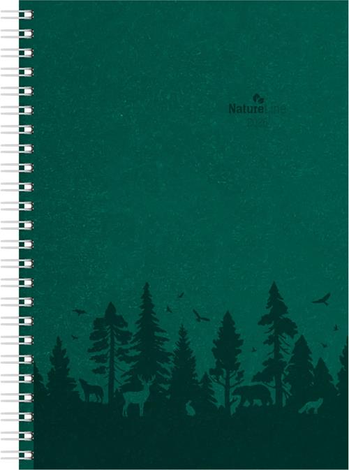 Agenda settimanale spiralata Nature Line dal formato di 15 x 21 cm. Le pagine sono 128 ed offrono tutto lo spazio necessario per pianificare le proprie scadenze. La vista è settimanale (1 su due pagine). I giorni settimanali feriali (dal lunedì al venerdì) hanno uno spazio che comprende tutte le ore (7-22). Stampato su carta proveniente da silvicoltura sostenibile (FSC) ed utilizzando colori di soja. Realizzata con una copertina rigida. I motivi sono incisi lievemente in copertina. Formato 15 x 21 cm. Agenda 12 mesi settimanale da Gennaio 2026 a Dicembre 2026. Contenuti in 4 lingue: DE, ENG, IT, FR. Utile planning annuale all'inizio e una rubrica finale. Segnalibro.