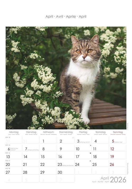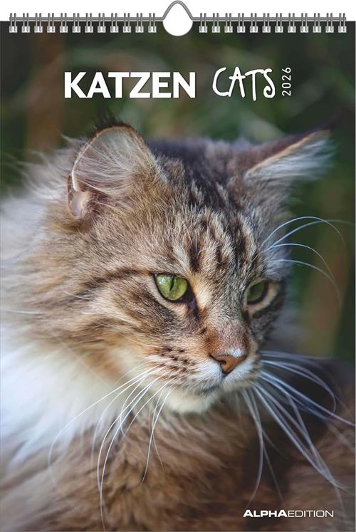 ALPHA EDITION - Calendario 2026 da muro, 12 mesi, 23,7x34 cm, Cats