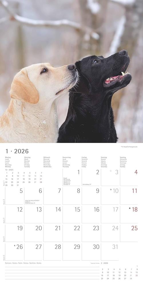 ALPHA EDITION - Calendario 2026 da muro, 12 mesi, 30x30 cm, Labrador Retriever
