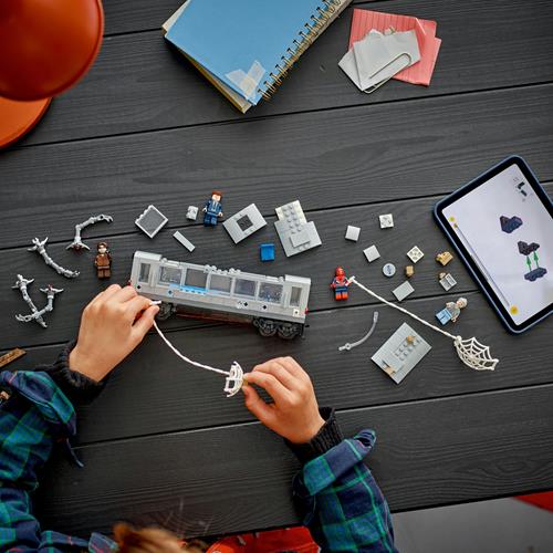 Spider-Man contro Doc Ock: duello sul treno (76321) è un set da costruzione per i bambini che amano le avventure d’azione e i giocattoli LEGO® | Marvel. Con infinite possibilità di gioco d’immaginazione e di esposizione, questo giocattolo costruibile dei supereroi è un fantastico regalo per i bambini e le bambine dai 9 anni in su. Questo set di costruzione del treno di super eroi è basato su una scena iconica del film Spider-Man 2 dei Marvel Studios. Contiene 4 minifigure: J. Jonah Jameson, Zia May, Spider-Man e Doc Ock. La mini figura di Spider-Man ha teste intercambiabili – con maschera e senza maschera – e una grande ragnatela che può essere fissata al treno. La mini figura di Doc Ock ha 4 tentacoli snodabili, 2 con elementi “raggio laser” e 2 con clip collegabili al treno. Il tetto sollevabile consente di accedere all’interno del treno, dove è possibile far sedere le minifigure. Per un divertimento digitale in più, i costruttori possono ingrandire, ruotare i modelli in 3D e seguire i loro progressi utilizzando l’intuitiva app LEGO Builder. Contiene 393 pezzi. Spider-Man contro Doc Ock: duello sul treno - questo set LEGO® | Marvel costruibile per bambini è un regalo play-and-display di supereroi per i bambini e le bambine dai 9 anni in su Il set da costruzione include le minifigure del film Spider-Man 2 dei Marvel Studios: Spider-Man, Doc Ock, J. Jonah Jameson e Zia May Avventure d’azione: Spider-Man usa una grande ragnatela per fermare un treno in corsa con i passeggeri a bordo, ma Doc Ock usa un tentacolo meccanico per afferrare il treno, intrappolandolo nella sua morsa Oggetti collezionabili: la minifigura di Spider-Man è disponibile con testa mascherata e non mascherata e il tetto sollevabile del treno dà accesso a un interno con spazio per far sedere un passeggero