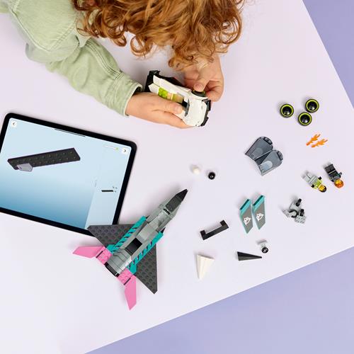 Questo playset con veicoli giocattolo Jet contro Auto sportiva LEGO® City (60489) a doppia funzione include un’elegante supercar e un jet supersonico per tanto divertimento di fantasia. Il jet giocattolo è dotato di ali posteriori, doppie alette verticali e stabilizzatori. I bambini possono usare una leva per azionare i post-bruciatori del jet e aprire il cockpit della supercar per accedere all’interno dettagliato, completo di sedile da corsa. Basta aggiungere le minifigure dei piloti per ore di epica azione di racing. Rendi speciale qualsiasi giornata con questo kit di costruzione con jet e auto: un fantastico regalo per i bambini di 6 anni che amano le auto da corsa e i modelli di aereo. Aggiungi questo set agli altri (disponibili separatamente) della gamma LEGO City per tanta azione cittadina. Rendi ancora più divertente questo set giocattolo LEGO con auto sportiva e jet scaricando l’app LEGO Builder, dove i bambini possono ingrandire, ruotare i modelli in 3D e seguire i loro progressi di costruzione. Il set contiene 259 pezzi