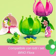 PERSONAGGIO DIVERTENTE E COLORATO - Adorabile personaggio colorato di BRIO Flora, con un design simpatico e caratteristiche intuitive come il magnete nascosto, il corpo snodato e l'outfit a foglia. SET DI GIOCO COLORATO - Include un set di gioco a forma di fiore con un design dettagliato e vivaci colori verdi, che si apre per creare un ambiente accogliente dove giocare. DIVERTIMENTO CREATIVO E NARRATIVO - Ispira i bambini a costruire i loro mondi e raccontare le loro storie mentre giocano, stimolando la creatività, l'immaginazione e le capacità di narrazione. AMBIENTE DI GIOCO CREATIVO - Compatibile con tutti i set di gioco e accessori BRIO Flora per un gioco senza limiti e un divertimento ancora più magico. DESIGN DI QUALITÀ BRIO – Sicuro per i più piccoli, senza piccole parti, facile da pulire e costruito secondo gli alti standard BRIO, progettato per resistere a lunghe sessioni di gioco.