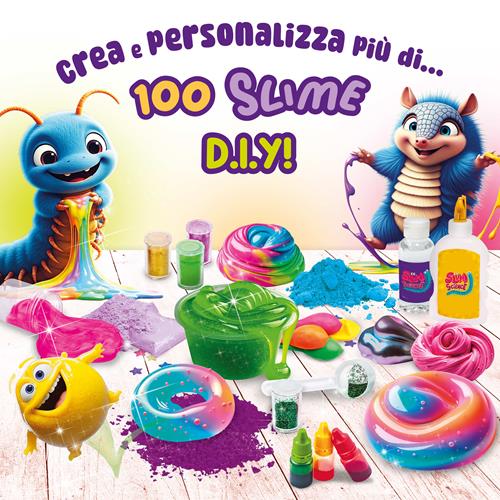 Un kit completo, con tutto ciò che serve per scoprire il fantastico mondo dello slime e creare infinite varianti do it yourself! Potrai realizzare ben 100 tipi di slime dai colori, texture e consistenze diverse: gommosi, elastici, antistress, luccicanti, profumati, frizzanti e tanti altri! Segui passo dopo passo i trucchi e i consigli di Slumi e i suoi amici per combinare ingredienti, colori e decorazioni e dare vita a slime unici e sempre nuovi… per un divertimento senza fine!