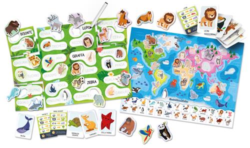 Un ricco kit didattico per scoprire gli animali. Con tante flash cards per sviluppare la capacità di linguaggio, il movimento e la logica, l’apprendimento diventa un piacere.E in più tanti puzzle degli animali.
