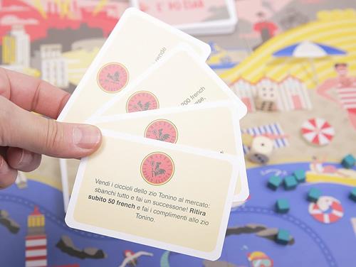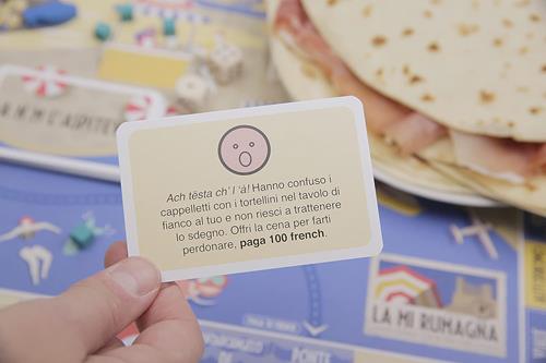 Cresciuti a piadina e spirito di intraprendenza, potrete mettere alla prova il vostro animo imprenditoriale a suon di dadi e contrattazioni. Un viaggio tra morbide colline, viste mozzafiato e un mare dolce e accogliente: lo scenario perfetto per scoprire se potrai essere la persona più ricca della Romagna. Sfida i tuoi avversari grandi e piccoli e sbanca tutto divertendoti, come solo in Romagna si può fare! “La mi Rumagna” è il gioco in scatola per chi sente la Romagna come stile di vita e in cui sfiderai amici e famiglia con investimenti immobiliari e contrattazioni, cercando di accumulare più french di loro. Le carte A n m l’aspiteva e E’ po ësar metteranno un po’ di sano pepe alla competizione. Avrai la possibilità di personalizzarne 9 per rendere il gioco ancora più tuo. Dagli antichi mosaici di Ravenna passando per le spiagge della riviera che hanno reso celebri le estati italiane e la loro vita notturna, dagli autodromi di Imola e Misano passando per città e paesi celebrati dal maestro Fellini, questo gioco rappresenta una visione ironica, emozionante e coinvolgente per vivere il calore di una terra unica nel suo genere. Con questo gioco da tavolo, viaggerai attraverso i luoghi del territorio romagnolo comodamente dal tuo salotto e potrai rendere più belli, ricchi e pieni di attrattive la città e i paesi della provincia di questo felice angolo d’Italia. Le carte contengono dinamiche che chi vive in Romagna conosce bene: modi di dire, qualche espressione in dialetto e tipicità locali, per un’appassionante scoperta del territorio. Cimentati nella contrattazione mettendo alla prova le tue capacità imprenditoriali accumulando denaro, terreni e attività: vinci se diventi la persona ricca fra chi partecipa alla partita.