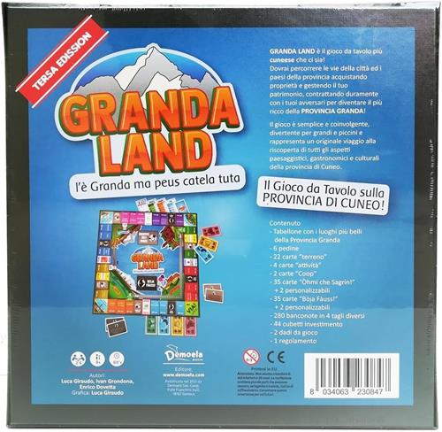Granda Land è il gioco da tavolo più cuneese che ci sia, con cui potrai scoprire le vie della città ed i paesi della provincia Granda; il gioco è già giunto alla terza edizione. Semplice e divertente, coinvolge tutta la famiglia, dagli adulti ai bambini; potrai dar sfogo alla tua vena imprenditoriale diventando il più ricco di tutti, accumulando soldi, terreni ed investimenti.