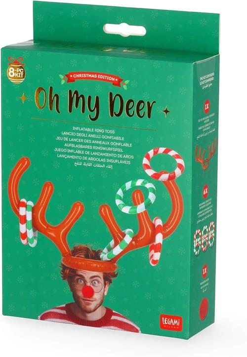 • Se con il prossimo regalo vuoi davvero fare centro, quello che stai cercando è il Lancio degli Anelli Gonfiabile - Oh My Deer di Legami! Un gioco gonfiabile perfetto per un Natale pieno di risate: prepara le corna, indossa il naso rosso e preparati a una sfida all’ultimo anello.