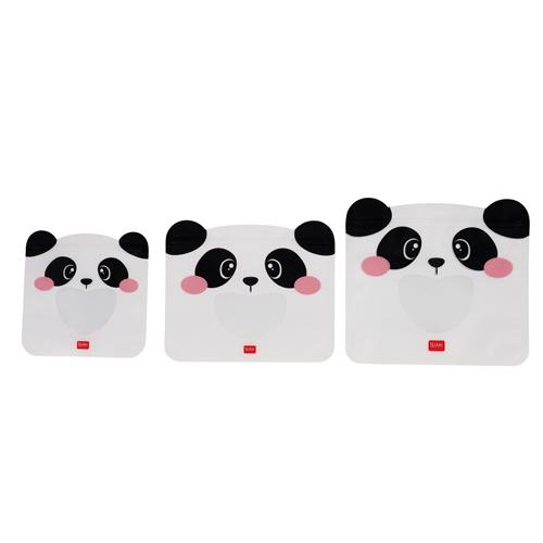 Buste alimentari riutilizzabili. Snack Bags - Set Of 3 Reusable Food Pouches - Panda