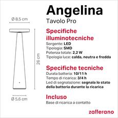 Lampada Angelina Pro Bianco, da tavolo, portatile, a batteria, ricaricabile