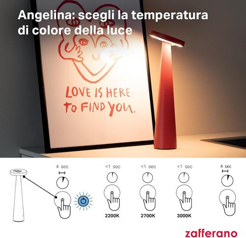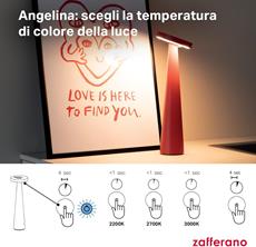 Angelina è una lampada da tavolo a batteria, portatile e ricaricabile, perfetta per illuminare momenti di lettura, studio o lavoro. La testa orientabile consente di dirigere la luce dove serve, rendendola ideale come lampada da lettura da scrivania o como