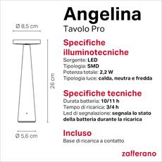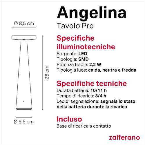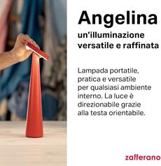 Angelina è una lampada da tavolo a batteria, portatile e ricaricabile, perfetta per illuminare momenti di lettura, studio o lavoro. La testa orientabile consente di dirigere la luce dove serve, rendendola ideale come lampada da lettura da scrivania o como