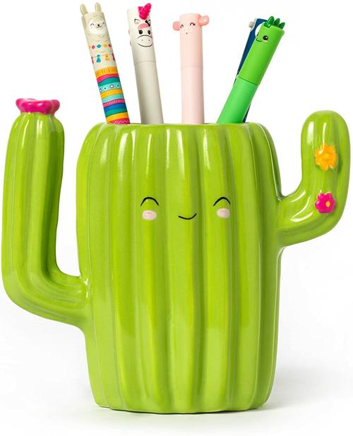 Legami - Portapenne in Ceramica, Desk Friends, 12,5 x 7,5 cm, Tema Cactus, da Scrivania, Dipinti a Mano