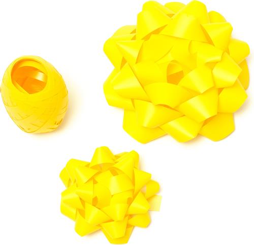 Set di due fiocchi e un nastro. Contiene 2 fiocchi autoadesivi e 1 nastro di 10 metri. Materiale: PP, PET.