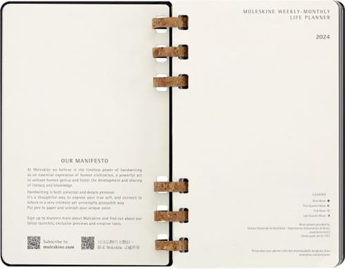 Planner Spiral Moleskine mensile orizzontale 2024, 12 mesi, Large, copertina rigida, Nero - 15 x 21 cm