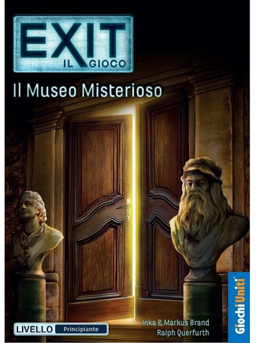 Exit il Museo MisteriosoIn Exit il Museo Misterioso vestirete i panni di viaggiatori culturali a Firenze. Avete deciso di intraprendere una gita allo splendido museo di storia naturale a Firenze per visitare il tesoro della Santa Maria. Cosa può andare storto? Eppure un’avventura ha inizio…Mettete alla prova la vostra creatività e ingegno con la serie Exit, le Escape Room in scatola. Il livello di questo capitolo è Principiante.