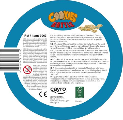 ??COOKIES BATTLE: Cookies Battle è perfetto per giocatori di tutte le età e offre ore di divertimento e competizione amichevole in un ambiente pieno di emozioni e sorprese., ??COMPONENTI DEL GIOCO: il set include 33 biscotti unici, ognuno con possibili sorprese nascoste. Questi cookie possono attivare azioni speciali che manterranno tutti i giocatori nel dubbio fino alla fine del gioco., ??\u200d??\u200d??\u200d??tCOME GIOCARE?: Agita bene la scatola, aprila e... tutto è pronto per iniziare a giocare! La persona che per ultima ha mangiato un biscotto inizia prendendo un biscotto dalla scatola ed eseguendo immediatamente lazione indicata dallicona (le azioni provocate dalle icone sono dettagliate dietro queste istruzioni)., ??VERSIONE AVANZATA: la modalità ladro di biscotti aggiunge un ulteriore livello di strategia e divertimento. I giocatori devono essere attenti e veloci per evitare che i loro biscotti vengano rubati, aumentando leccitazione e la competitività del gioco., ??CHI VINCE?: Il gioco termina quando non ci sono più biscotti nella scatola. Il giocatore con più biscotti verrà dichiarato vincitore e gli altri dovranno comprargli un bicchiere di latte con biscotti al cioccolato. In caso di parità, vince il giocatore con più biscotti senza icone.